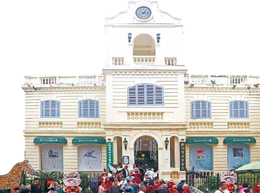 这座建于1925年的建筑,是赤坎老街的标志性建筑之一。二层钢筋混凝土结构,仿法国钟楼样式设计,顶层的钟亭里,自鸣钟虽已停止了摆动,却仿佛还能听见它在百年前,准时敲响的清脆钟声。建筑的外墙被装修一新,像是给它披上了一件金黄色的外衣,更添了几分庄重感。