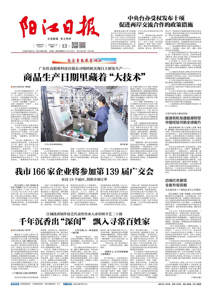 - 我市166家企业将参加第139届广交会 阳江日报讯(记者/陈思捷 通讯员/范嘉敏)第139届中国进出口商品交易会(广交会)将于4月15日至5月5日在广州分三期举办线下展,线上平台同步常态化运营。记者日前从市商务局了解到,目前,我市各项