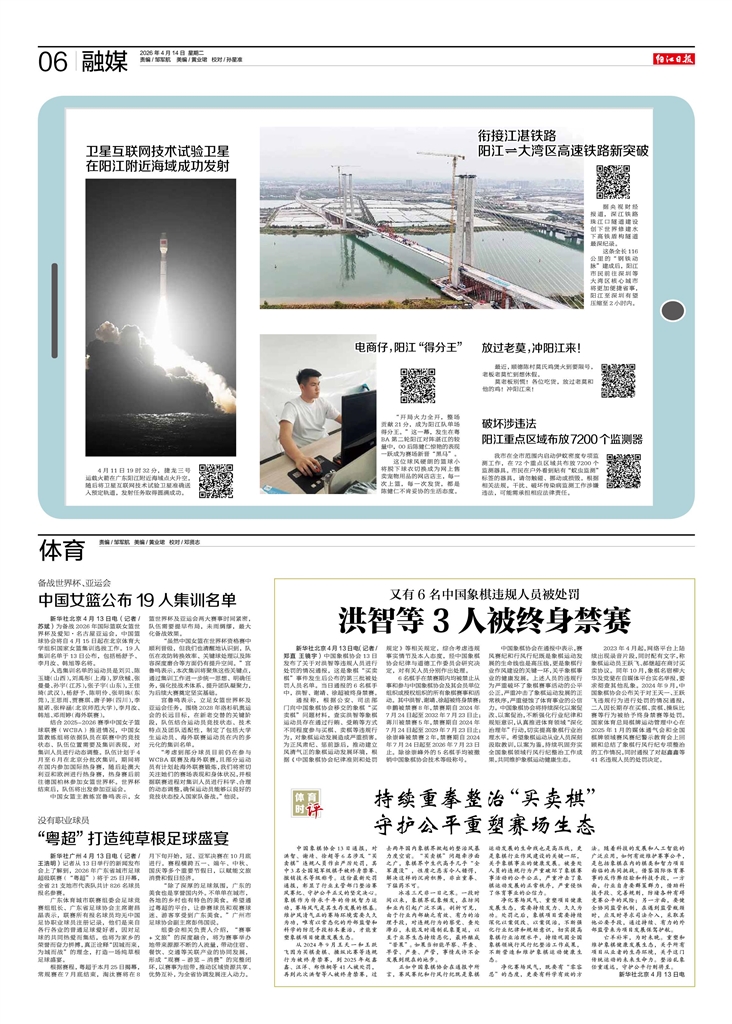- “粤超”打造纯草根足球盛宴 新华社广州4月13日电(记者/王浩明)记者从13日举行的新闻发布会上了解到,2026年广东省城市足球超级联赛(“粤超”)将于25日开幕,全省21支地市代表队共计826名球员报名参赛。 广东体育