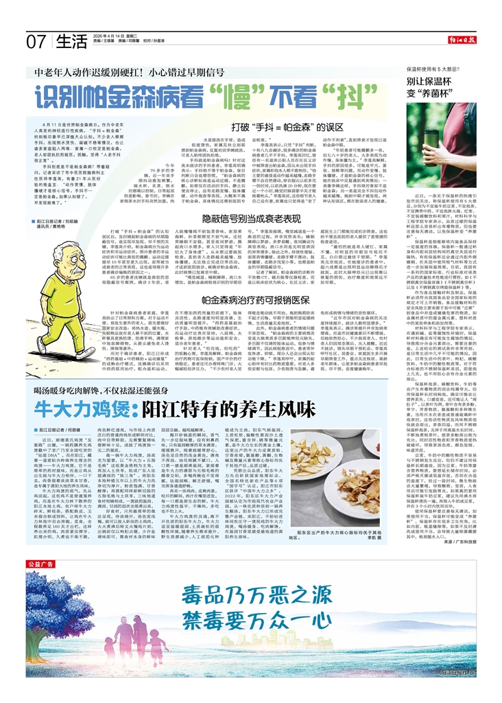 - 识别帕金森病看“慢”不看“抖” 4月11日是世界帕金森病日。作为中老年人高发的神经退行性疾病,“手抖=帕金森”的刻板印象早已深植大众认知。不少老人频频手抖,出现倒水烫伤、端碗不稳等情况,也让诸多家庭陷入两难:家属一口咬定是帕金森