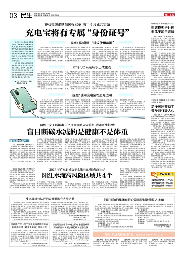 新国标全称为《移动电源安全技术规范》(GB 47372—2026),设置12个月过渡期,强制实施时间为明年4月1日。作为我国移动电源专用强制性国家标准,它将从电芯安全、智能管理、产品溯源等多方面全面提升充电宝的安全门槛。