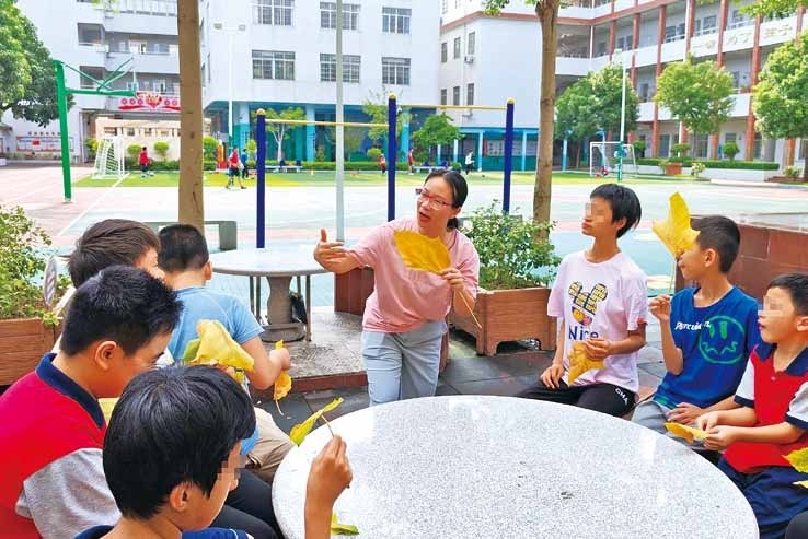 “孤独症学生对抽象的概念难以理解,但对具体的情境、真实的体验却有着敏锐的感知力。让学生身处鲜活的生活场景中,有利于激发他们的灵感。”黄盈慧说,在儿童诗创作教学课程里,她围绕“四季之美”设立了四大主题:春之生机、夏之热烈、秋之喜悦、冬之希望。每个主题又细分为四个单元,把校园里的风景、植物、动物、人物和家乡的节日文化融入课程设计,从“一棵树的生长”到“一只昆虫的忙碌”,从“一朵花的绽放”到“一场秋雨的声响”,校园里的一草一木都成了鲜活的教材。