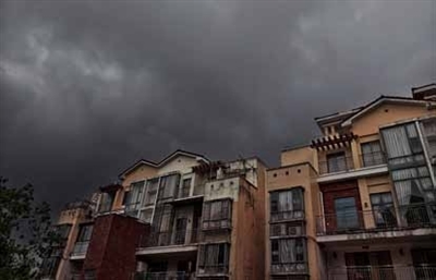 上图:黑云笼罩下的市区。