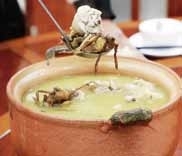在阳春市,“四大南药”之一的春砂仁与老母鸡同煲,便是阳江一道名菜。取春砂仁拍扁,与鸡块同入瓦锅慢炖一小时,出锅后整鸡色泽通透,汤汁呈琥珀色,砂香四溢,芳香满口,吃后化寒祛湿、益元补气。