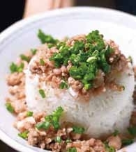 东平鸡饭,不是“饭配鸡”,而是鸡饭合一。渔港人家的实在和讲究,都藏在了这一碗饭里。一份白米饭,盖几勺鸡肉撒一把葱花,看似随性而为,实则暗藏讲究。师傅一把菜刀沿着骨肉缝隙“见招拆招”,将鸡肉和骨头完美分离。为了让鸡饭更鲜甜,还得按比例配些许瘦肉。瘦肉切粒剁碎,但也不能太碎,保留小肉粒吃起来才更有嚼劲,米饭要选用粘稠度低的籼米,每一碗都用独立炖盅隔水蒸煮。