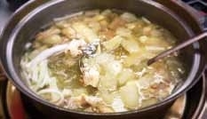 风姜是什么狠角色?它比普通生姜辛辣霸气得多。它不是直接下锅,而要先经过“三蒸三晒”的历练,再和猪筒骨熬足8小时做汤底,最后放入老母鸡文火煲40分钟。出锅那一刻的汤色奶白,辛香与鲜甜完美融合,不仅驱寒暖身,更是将烹饪技艺与食疗功效完美结合。喝一口,从喉咙暖到脚底。