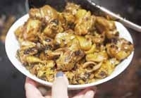 将新鲜的沙姜剁成末,与盐、油混合,均匀涂抹在鸡身内外腌制入味。或是沙姜豉油鸡,或是沙姜焗鸡,一口下去,满满的都是沙姜特有的浓香。