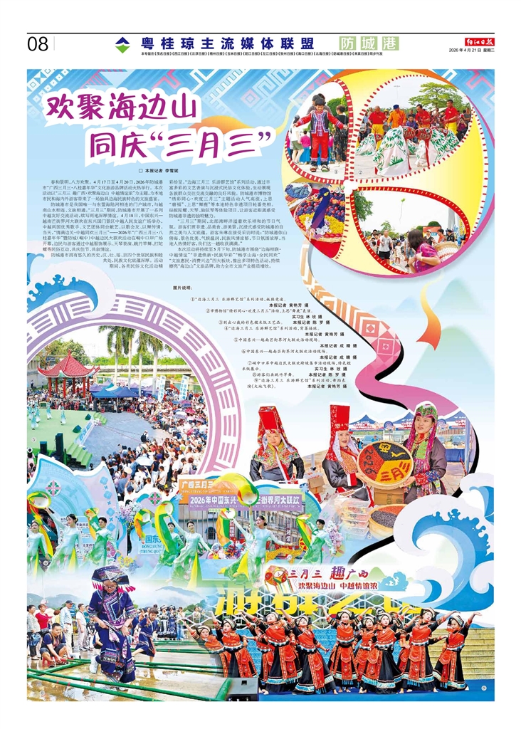 □本报记者 李雪妮 春和景明,八方欢聚。4月17日至4月20日,2026年防城港市“广西三月三·八桂嘉年华”文化旅游品牌活动火热举行。本次活动以“三月三趣广西·欢聚海边山中越情谊浓”为主题,为