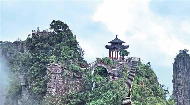 人间四月,广西贵港北帝山风光最是温柔也最是壮美的时节。春风拂过,新绿初染千山,崖壁上的杜鹃次第绽放,红粉点缀,明艳可人。近年来,这里已成了一处火爆的网红打卡地。因其山清水秀,景色宜人,以峰秀、林茂、石奇、花艳、泉清、雾迷“六绝”闻名,奇、秀、雄并存,幽、静、艳齐聚,有“小张家界”之称。因慕名已久,近日我约上几位老同学自驾到此一游。